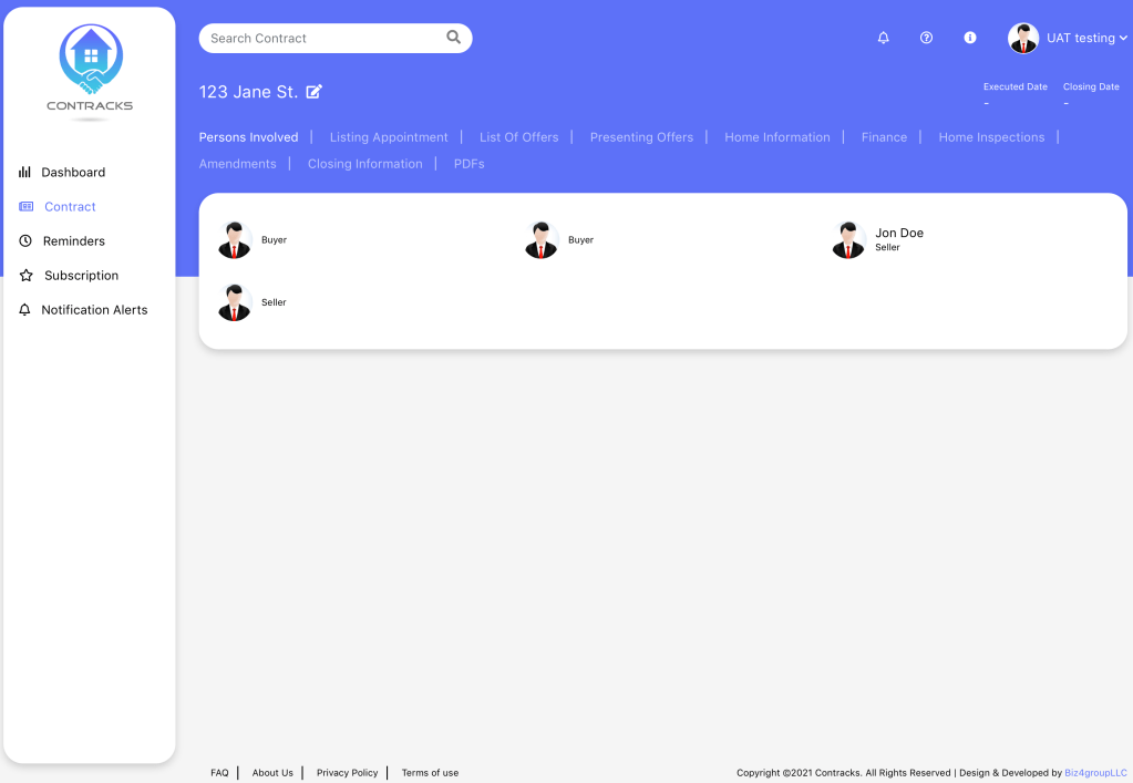 In the buying contract you will have separate tabs for all of your notifications and tasks that need to be completed…from scheduling home inspections, sending amendments, and scheduling your final walkthrough before closing.
